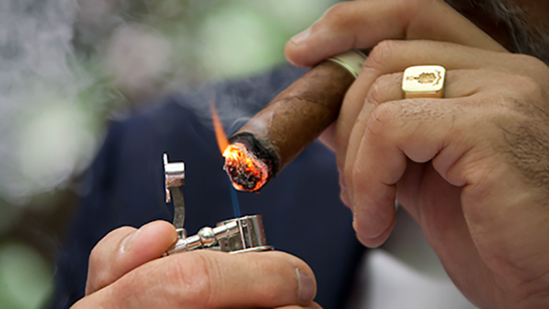 În ciuda a ceea ce cred cei din afara lumii trabucului, savurarea acestor trabucuri presupune o anumită complexitate. Spre deosebire de alte țigări, nu constă doar în aprins și fumat. Mai mult, nici aprinsul trabucului nu este convențional. Aprinderea unui trabuc durează chiar și un minut. O perioadă de timp pentru care nu funcționează orice brichetă.